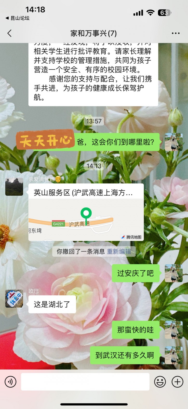 刚才问了下到哪里?知道娃爸在开车,就问我爸,结果直接丢个位置我。