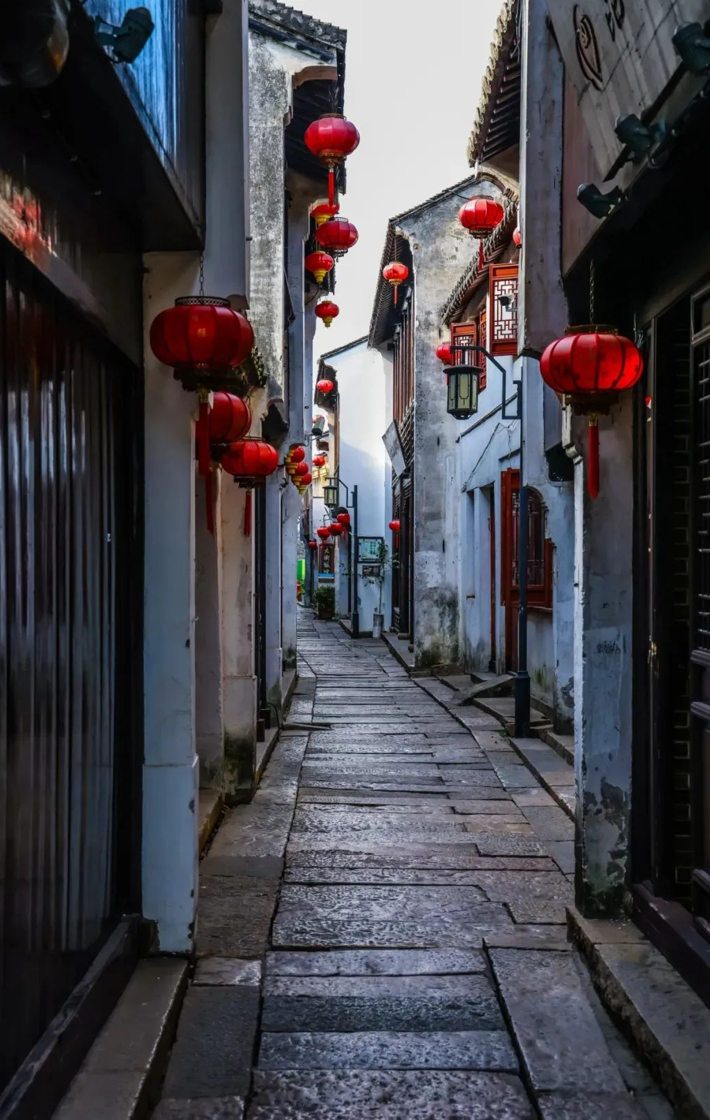 位于昆山巴城镇的巴城老街,始建于清代光绪年间。其中一条东西向全长200多米的石板街,仅能容纳三人并肩而行,天空剩一线可见,得名“一线天”。石板街两旁房屋沿河而建,粉墙黛瓦,展现出典型的江南水乡风情。