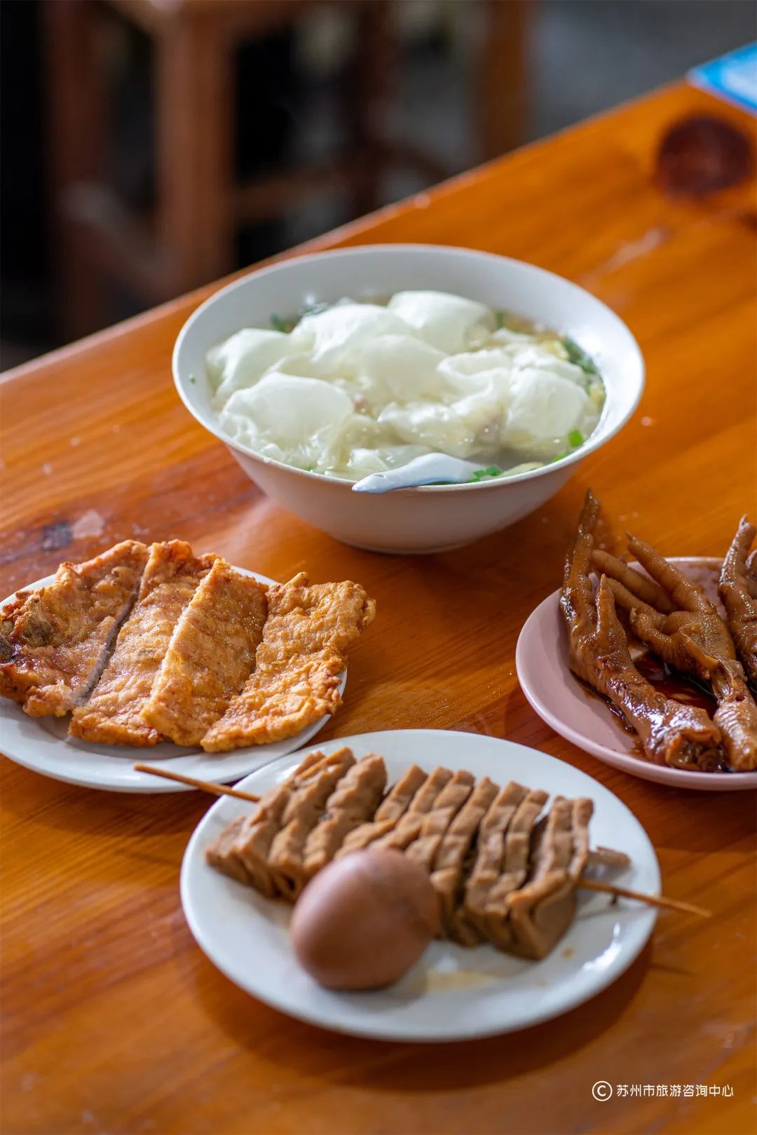 来到正仪老街,你还能品尝到许多水乡特色小吃:晶莹的泡泡馄饨、香喷喷的萝卜丝饼,还有油氽大排、海棠糕、鸡爪......一路上边走边吃,嘴巴根本停不下来。