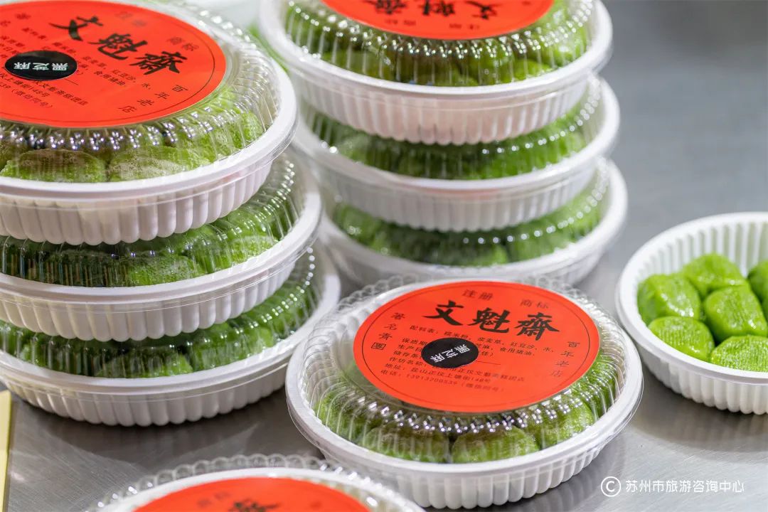 正仪老街上大概有二三十家糕团店,售卖青团、赤豆糕、南瓜糕、猪油糕等各种点心。在这么多糕团店中,名气最响的要属上塘街148号的“百年老店”文魁斋。2013年,正仪文魁斋青团制作工艺被列入了第六批苏州市级非物质文化遗产代表作名录。
