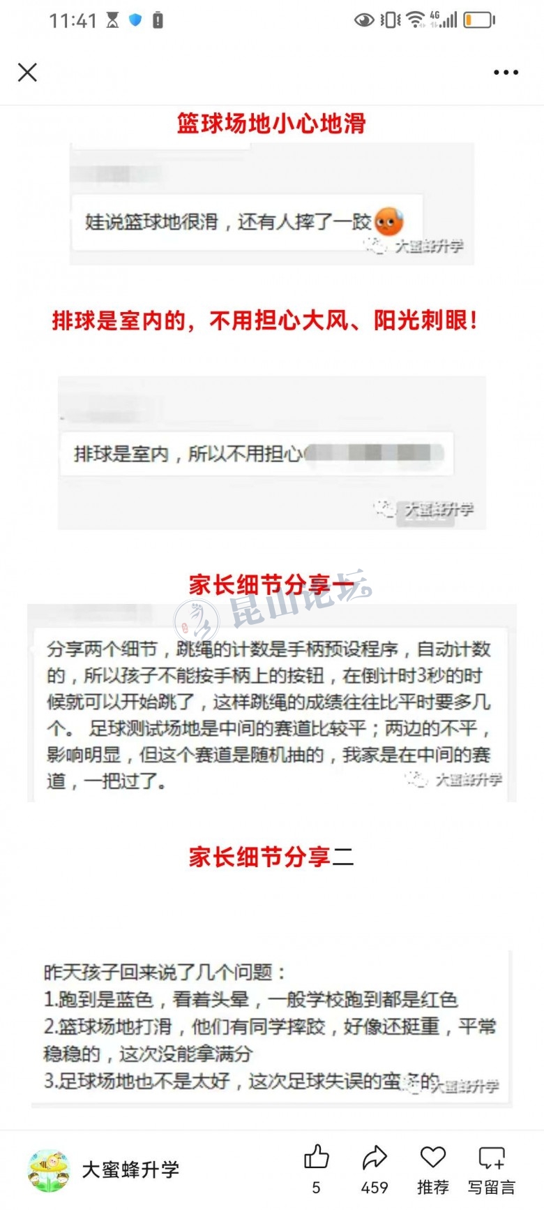 最后一个项目:跑步,娃刚上场准备时,看到一个女生被担架抬走,什么原因不清楚。她站在起跑线上时,同班的一个女生和别的班不太熟的女生,还有隔壁兄弟班的男生们,站在操场的不同位置,有的是刚考完的,有的在准备下一批考的,都大喊娃的名字为她加油助威!现场气氛特别热血,人心澎湃!