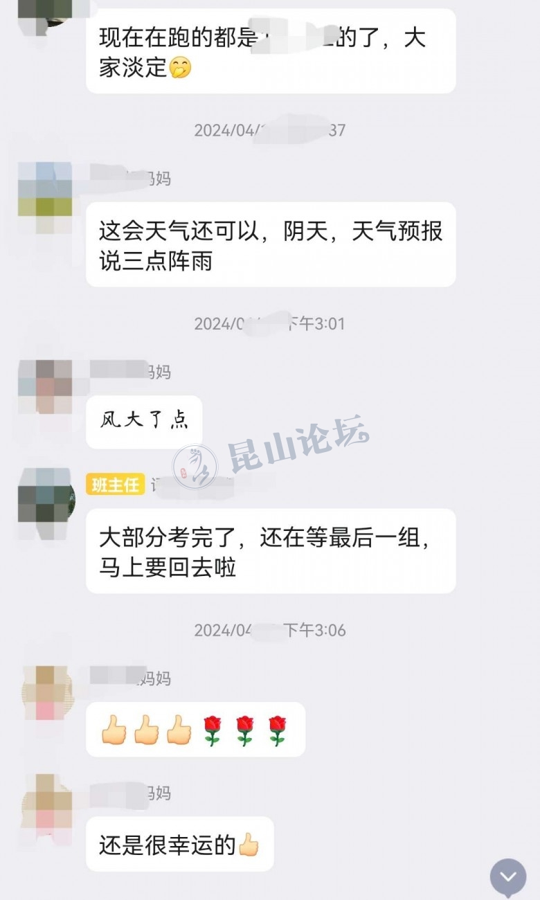 校中饭比以往提前,吃完饭后,孩子们换好舒适的运动衣服,我为娃准备的是运动短裤+长袖T恤+长腿袜,娃从吃完中饭开始小口兑了红牛的凉白开,下午三点有阵雨,考试临时通知提前半个小时。老师们分批带学生坐大巴赶往考点,家长群也开启了刷屏送祝福环节,从进考场预备区开始,老师们的照片和视频就发出来后,家长群瞬间又炸了,特别是妈妈们,无一不在传达着自己的紧张。