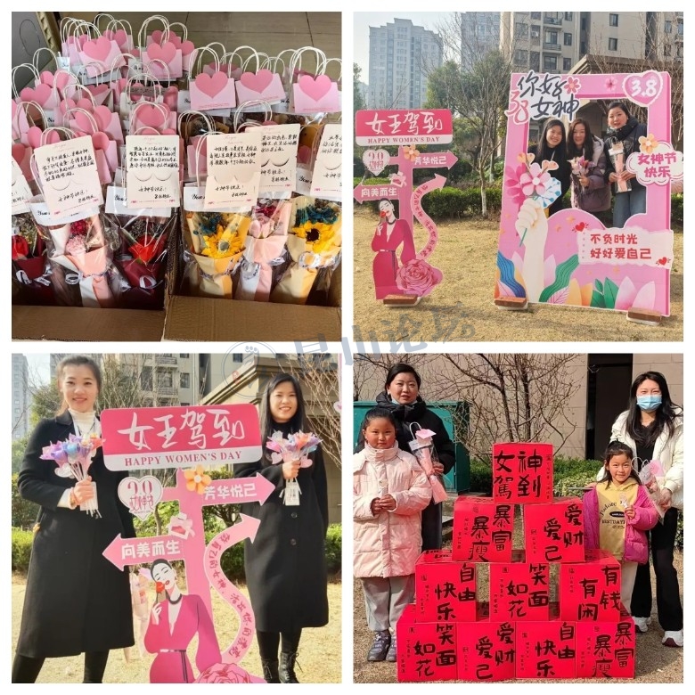 3月8日上午,江苏枫庭物业服务中心以“致敬‘她’力量,感恩同行路”为主题,在小区内及物业服务中心开展暖心送祝福活动,为女性业主送上鲜花与润手膏,设置女神打卡点,传递节日温暖与关怀。 清晨7时,物业工作人员便精心布置活动现场。一束束娇艳欲滴的康乃馨与玫瑰整齐排列,并温馨地附上手写贺卡,搭配贴有“芳华永驻”祝福卡的定制润手膏,承载着对女性业主的诚挚祝福。活动开始后,物业管家与秩序员身着正装,面带微笑,在小区出入口、单元楼栋前为每位路过的女性业主送上节日礼包。“王阿姨节日快乐!感谢您一直支持物业工作!”“李姐,这支护手霜滋润效果特别好,您试试!”热情的话语与惊喜的礼物让现场充满欢声笑语。 “平时工作忙得顾不上过节,没想到一出门就收到这么贴心的礼物!”业主张女士捧着鲜花感动地说。准备开车出门的刘女士也表示:“护手霜正好缓解了我做家务的手部干燥,物业的用心让我们感到特别温暖。”活动现场还吸引了不少男性业主驻足,主动为家人代领祝福礼包,温馨氛围弥漫整个社区。
