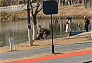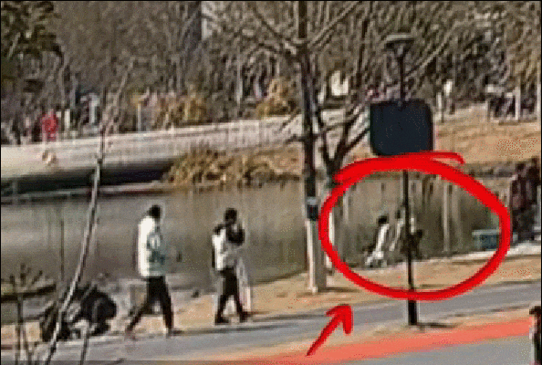 就在周边的大人们还没来得及反应之际,身穿橙黄色外套的老伯像一阵旋风冲了过来,纵身扎进湖水中,仅仅不到20秒,就将男孩托上岸。