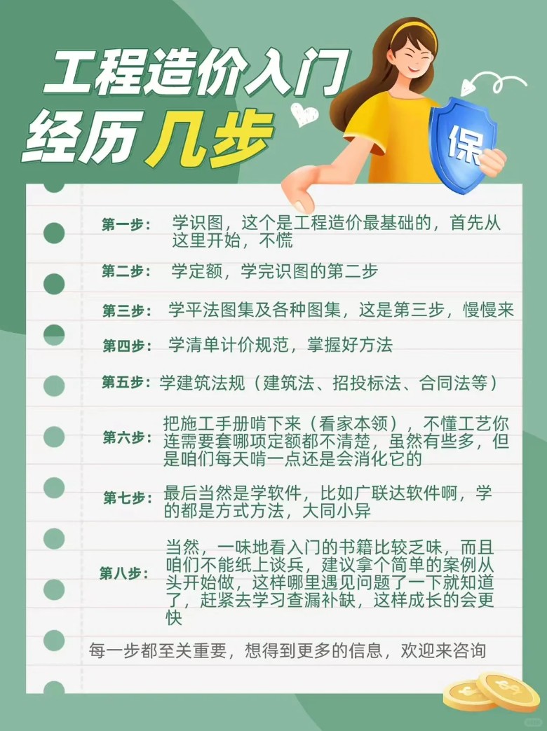 造价人员的工作流程是拿到图纸以后先熟悉一下图纸,在大脑中简单构建一下三维模型,熟悉图纸以后开始进入算量部分,根据图纸信息手算或者绘制三维模型来得到工程量,然后根据所得工程量组相应的清单定额,调整人材机的价格得到最终的工程造价。简单来说就是造价分为三部分:✅识图✅算量✅计价。🔥识图是造价的基础。不认识图纸就无法从图纸获取正确的信息,信息获取的准确严重影响工程量的计算,甚至出现指鹿为马的情况。举个简单的例子,你分不清平面图和剖面图的构件表示,然后把柱子错认为梁。建筑图纸可以看一下建筑工程识图的相关书籍,结构部分看16G图集,能帮助你快速认识图纸。🔥算量是不可或缺的一项。工程量的计算是后期组价的基础,如果算出的工程量都有问题,那么最后得出的工程造价必然也是不正确的。算量分为手算和电算,要学会查看当地的定额计算规则和相关图集,让算出的量有依有据。要多找几套不同结构的图纸练习绘制,避免一画就废的情况。🔥🔺最重要的一步就是计价的。计价部分直接影响最终的工程造价‼️一定要熟悉清单和定额,虽然现在组价都是操作软件完成的,但是还是要清楚计价模式、费用组成及各部分费用之间的关系。一定要在计价软件中多操作学习,并且学会分析,把思路梳理清楚,学起来就比较快了。⚠️工程造价是一个实操性很强的专业,必须多练多学。学习过程虽然会比较苦,但是学海无涯苦作舟,学会以后就可以品尝胜利的果实,加油。昆山才思教育 江老师19941905958 玉山镇城北紫竹路九方街九栋三楼