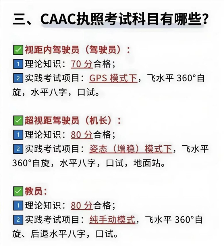 :CAAC 视距内(驾驶员证): CAAC 超视距(机长证)