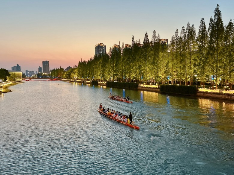 • 2025-04-28 19:44 少女心松鼠: 昨晚散步时没有拍到练习赛龙舟的,听到声音跑到河边都划走了,今天走在桥上又听到划龙舟声音,早早拿好手机准备好拍,觉得拍的那几张都不错!