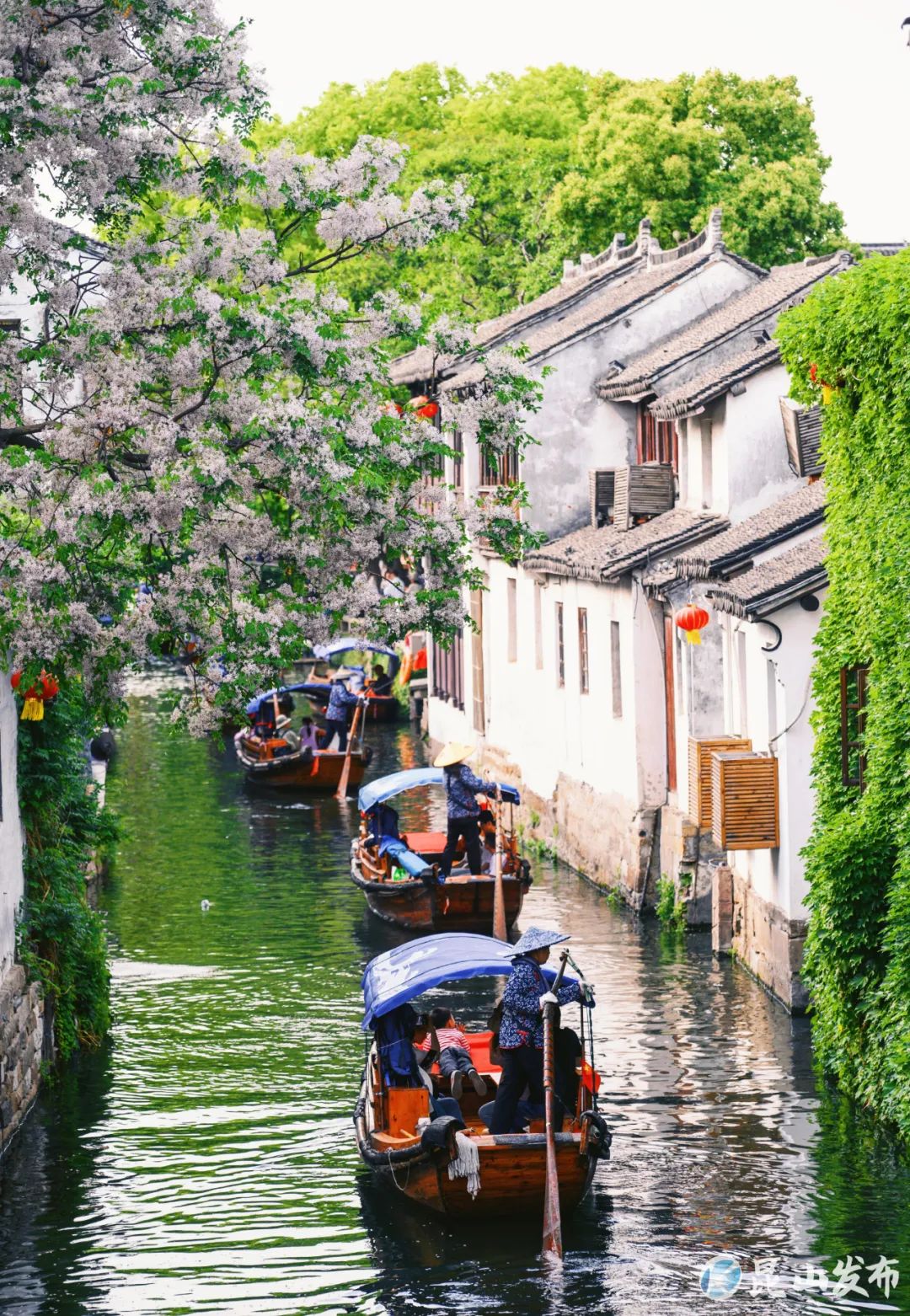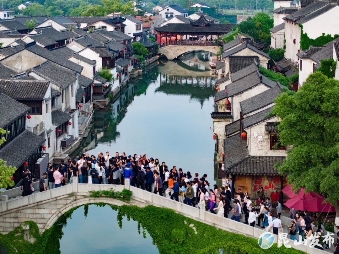 国潮市集、古戏台演出、“昆韵艺匠”献唱……“五一”假期,周庄古镇系列活动上新,吸引众多游客前来体验。古镇内游人如织,休闲体验与热闹市集相映成趣,每一位游客都沉醉其中、流连忘返。焕新回归的《只此周庄》假期火爆加演。70分钟的演出中,一幅幅如梦如幻、摇曳生姿的宋代人文画卷在舞台上依次展让“看戏人”成为“入戏者”,在沉浸式体验中感受千年水乡文化。