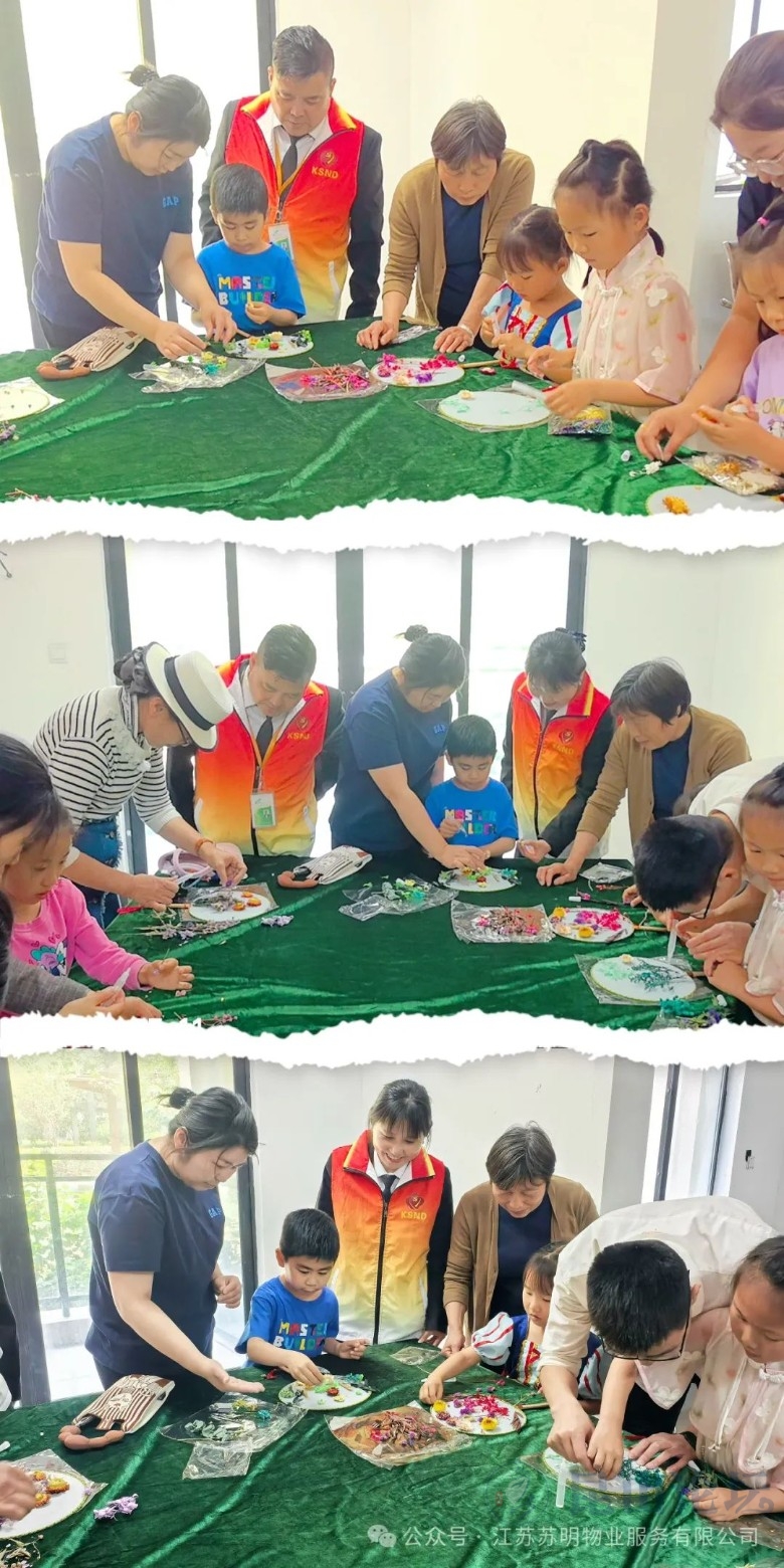 活动伊始,项目经理为大家讲解了制作永生花团扇的方法和技巧。永生花,寓意着永不凋零的热情与关怀,正是对女性业主最美好的祝福。随后,大家充分发挥自己的创意和想象,将朵朵繁花粘贴在空白的团扇上,素白的扇面渐渐被填满,一把把或清新淡雅或浓烈艳丽的团扇作品便呈现在眼前。看!妈妈们手中独一无二的礼物,让灿烂的花瓣定格为永恒的美丽。