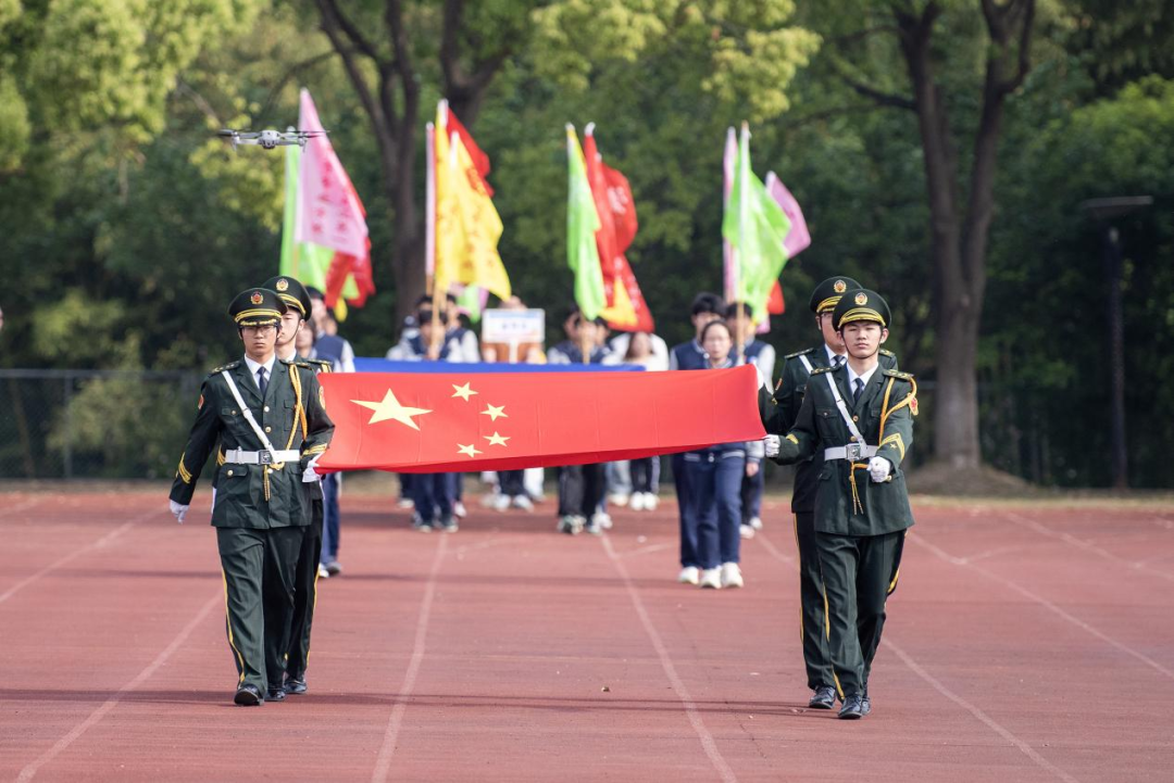在激昂的音乐中,班级方阵闪亮入场,同学们精神抖擞,创意十足。高举自制的标语,整齐划一的步伐,喊着嘹亮的口号,展现出勇往直前的决心。别具一格的服装,活力四射的表演,在欢呼声中尽情展示班级风采,赢得阵阵掌声。