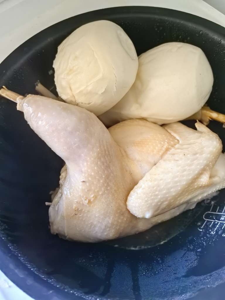 每次看到奇隽的童子鸡特价就忍不住买一只,不到两周时间毛估估吃了四只了,今天就抹了半包盐焗粉放锅里煮熟,没法做饭了就整俩馒头,梅花肉和蘑菇切成丁撒点黑胡椒海盐烤一烤,最后再凉拌个沙葱烧个菊花脑蛋汤,只剩了一点鸡其他光盘,,,,,又成功的糊弄了一顿