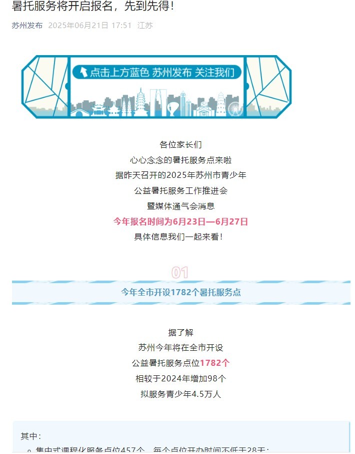 凌晨百合: 免费的,昆山青少年公益暑托服务开始报名....... (2025-06-23 12:08)