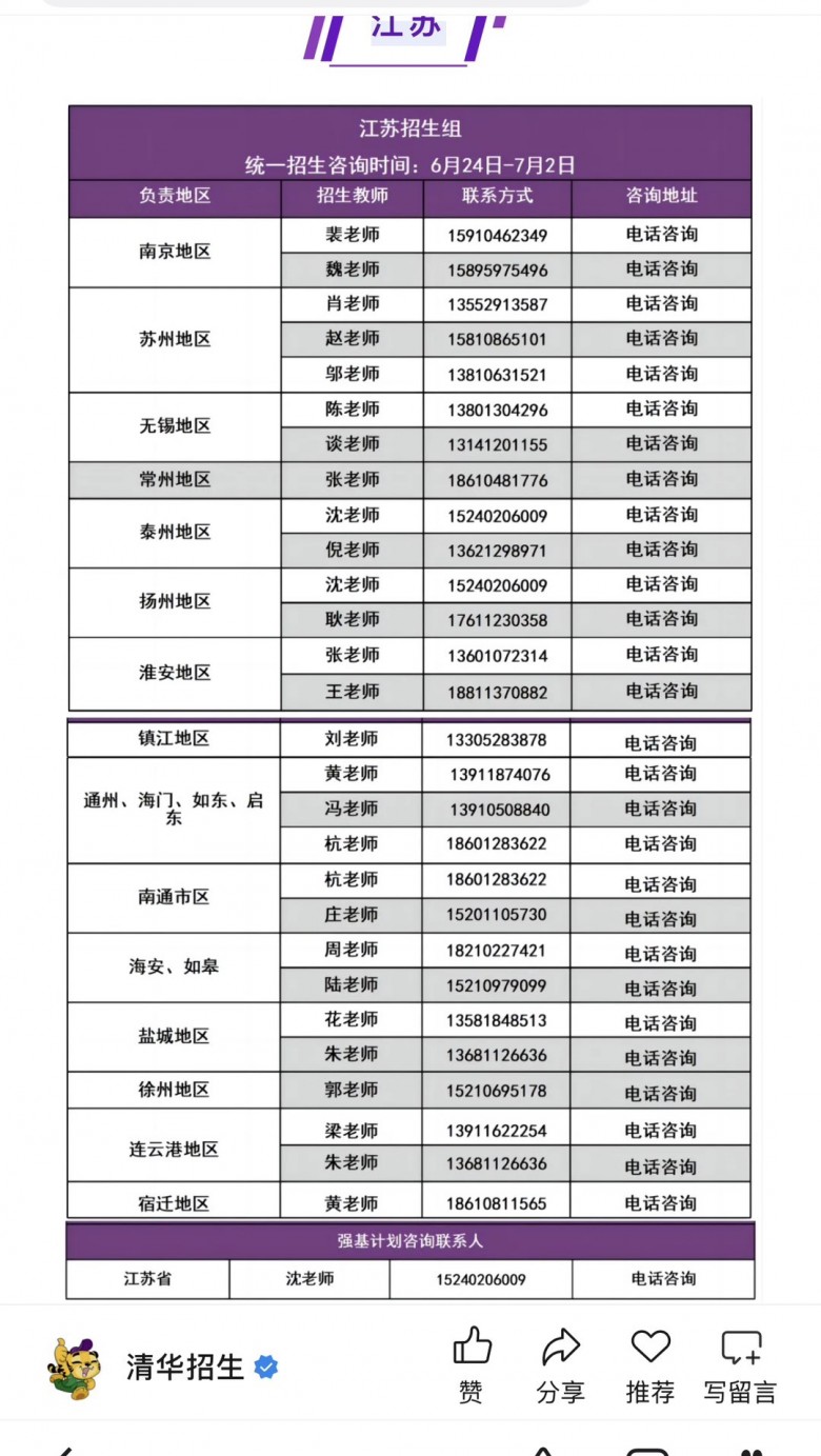 maisiejiang:去年高考苏州3.8万人,南通2.6万人。清华 招生组 3个招生老师负责苏州地区,7个招生老师负责南通地区。 (2025-06-14 23:08)