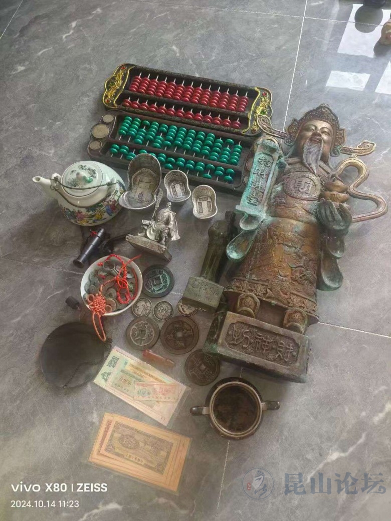 一堆好东西,家里留下来的,便宜处理了,铜钱35一个,大铜钱贵点,纸币35一张,银元没几个了,铜器,瓷器大的150其他的价格都差不多都不贵,字画,玉器,算盘,铜财神爷贵点,有喜欢的可以下手了?都是最低价格,老东西,有收藏价值。拆迁搬家翻出来的唉事,东西太多了,快卖完了,卖一半了。价格可以商量,要多了,可以便宜处理。18663029169微信同号有价格就好商量,捡漏过来。