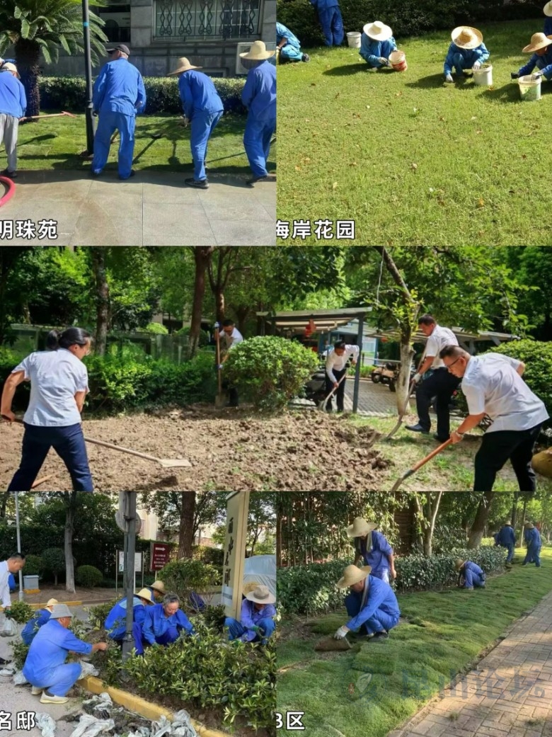 烈日下,工程部的师傅们钻进闷热的污水井检修管道,俯身在配电房排查电路,及时修补路面、维护灯具墙面……工具包里的藿香正气水,见证着与酷暑的交锋。 绿化工人躬身于热浪中,浇灌干渴的绿植,修剪疯长的草坪与灌木,清除砖缝间的顽固杂草……以汗水滋养出园区的盎然绿意。