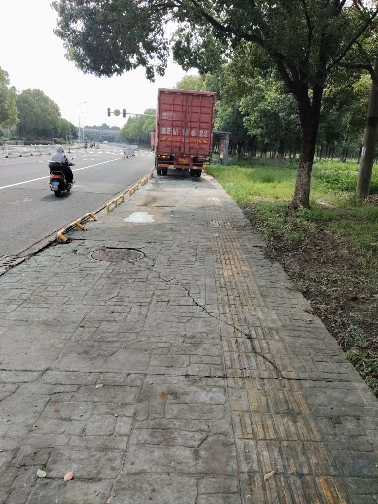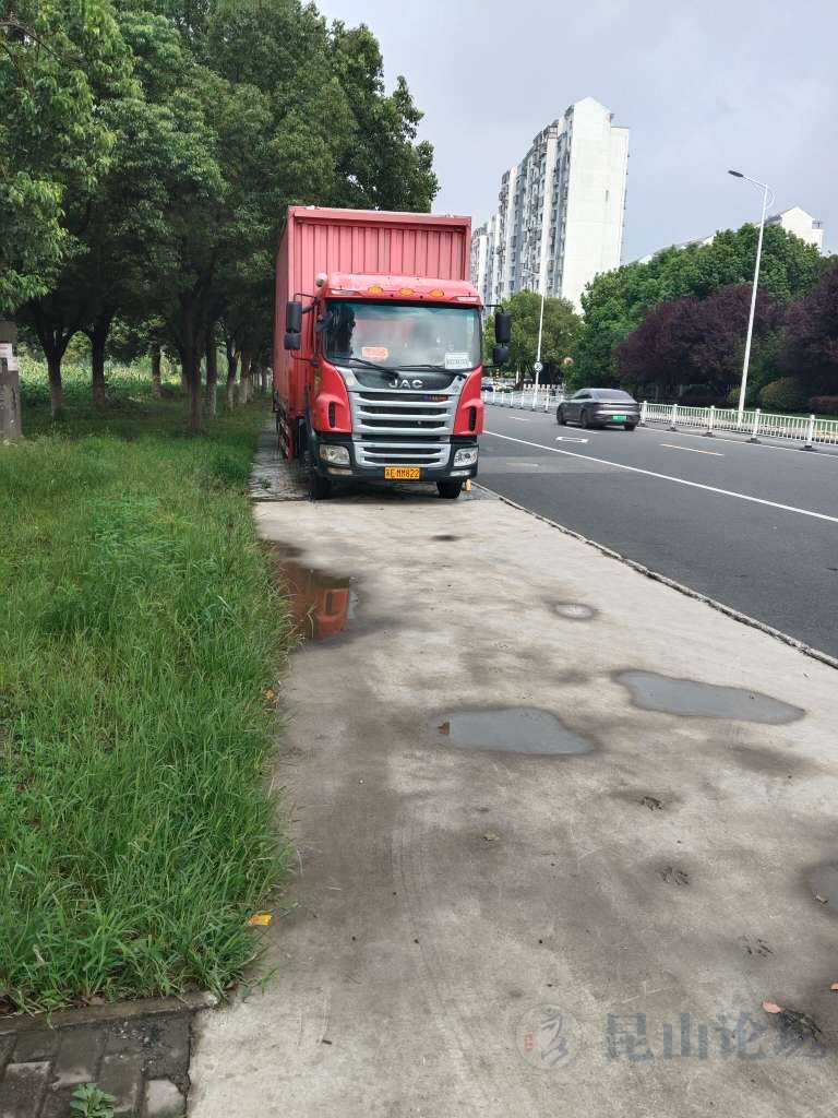 [网友爆料]昆山河涌路笨家伙上了人行道,还把一个小护栏压倒了 [复制链接]