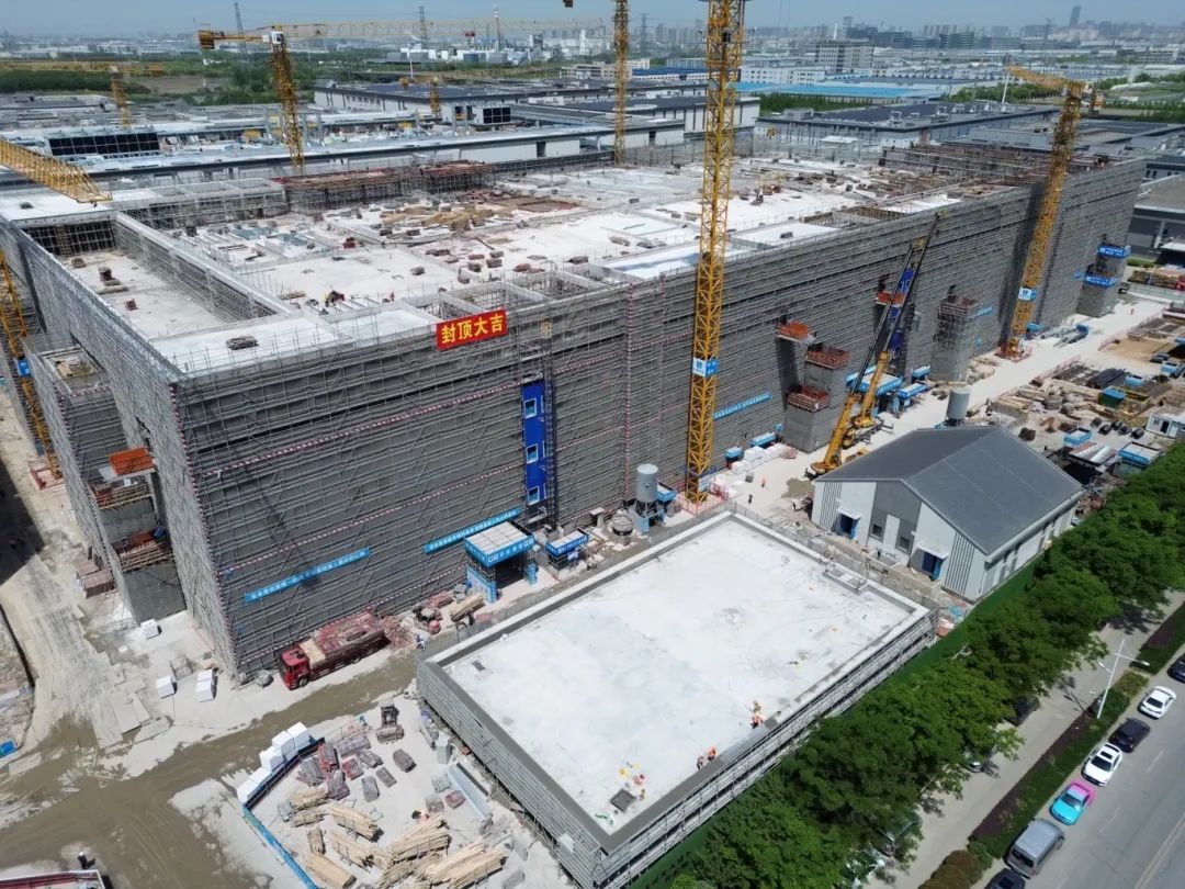 作为项目承建方中建七局继一期项目后,在二期工程中将“快速建造”的基因刻入血脉:7天完成1000米围墙及大门施工,3天实现“三通一平”,提前16天撕开首个施工突破口、53天完成首栋9万平米厂房主体结构(较计划提前30天)、48天实现了23万平米全面封顶……立臻厂房二期以一连串突破性进展,成功刷新了昆山工业厂房建设的速度纪录。