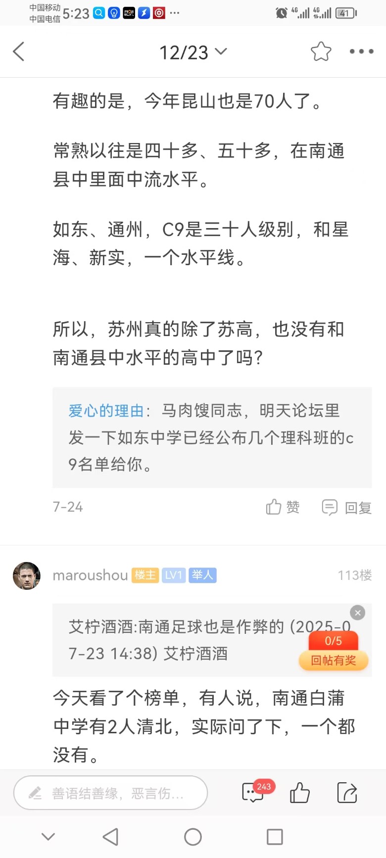 maroushou:启东中学、海门中学,我真没有质疑过。甚至极少会去说到。质疑白蒲中学,因为榜单有2人清北,实际是0人。....... (2025-08-04 15:02)