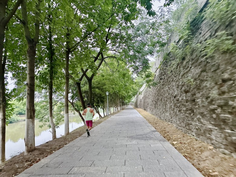 荆州很凉快,温度大概25度左右,和某人走到城墙下,看到唯一一辆电驴,同骑了一会,后面某人嫌拥挤,就他跑步我骑。沿着外城墙从东面这边骑到南门再内城墙骑行。