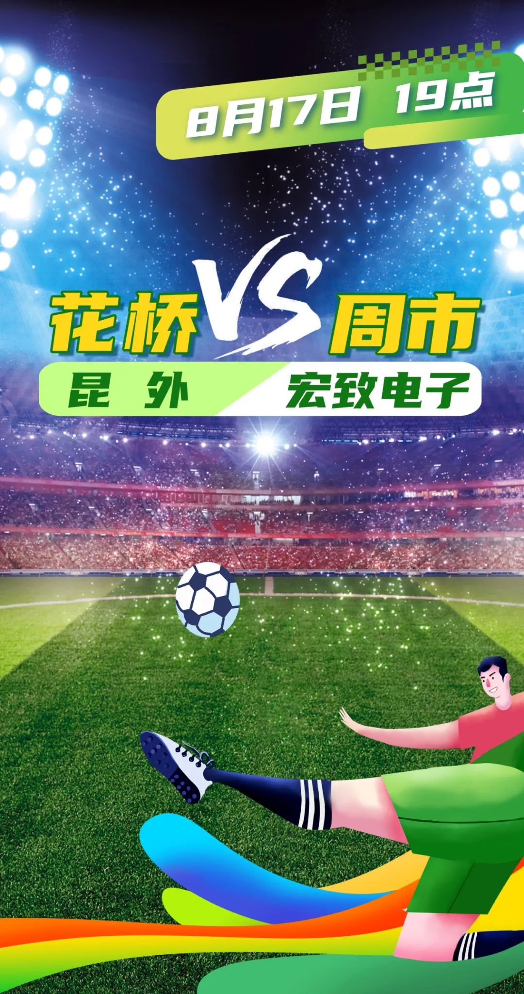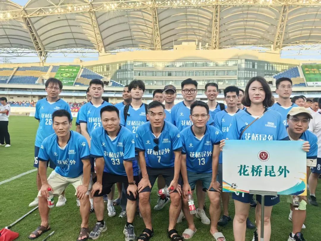 花桥昆外足球队是一支由本校教师、花桥企业员工及社区居民共同组成的活力之师,平均年龄34岁。全体队员必将以最饱满的状态驰骋绿茵,用精彩表现诠释花桥人永不言弃的拼搏精神,让属于花桥人的足球光芒闪耀整个赛场!