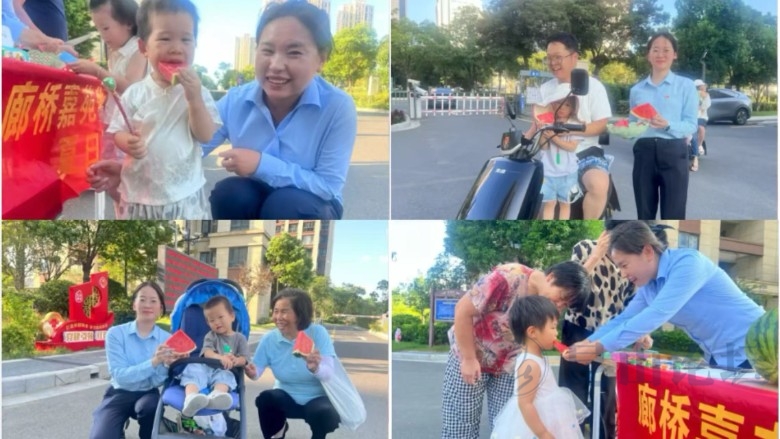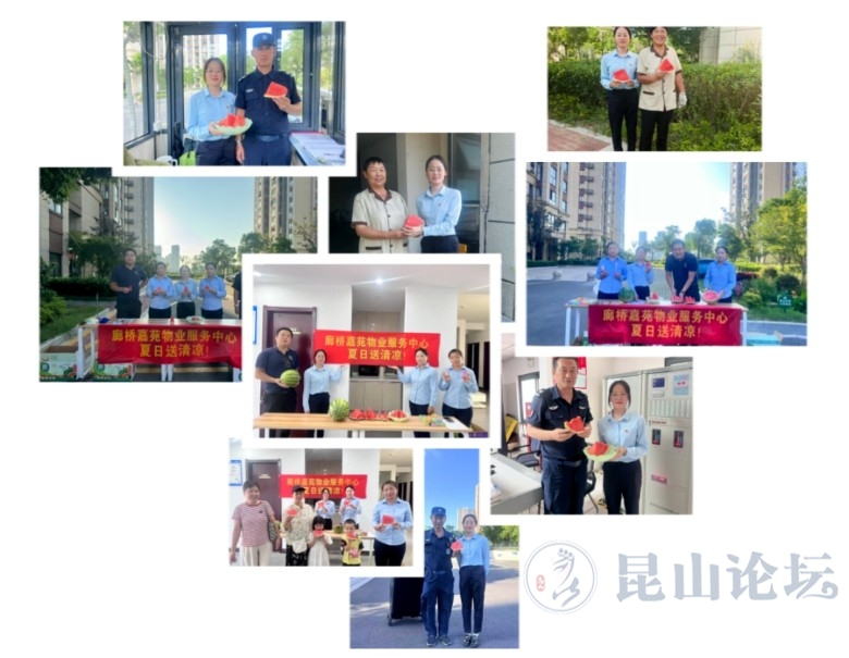 活动现场热闹非凡。物业服务人员们身着统一的蓝色服装,热情洋溢地为每一位业主送上清凉。最受欢迎的当属新鲜采摘的本地 “8424 西瓜”,工作人员将西瓜切成小块,邀请业主们免费品尝。甘甜多汁的西瓜不仅驱散了夏日的炎热,更甜进了业主们的心坎里。开车回家的业主接过工作人员递上的西瓜,露出惊喜的笑容,纷纷竖起大拇指点赞,车内的家人也开心地与工作人员互动;一位路过的外卖小哥收到西瓜时,也露出了灿烂的笑容,同为服务行业从业者,他用 胜利的手势表达了对活动的认可和支持! 活动中还特别为祖国的小花朵们准备了驱蚊手环 ,虽然数量有限,但大家都能有序领取。贴心的物业服务人员还细心地蹲下身,为害羞的小朋友们佩戴手环,画面十分温馨。此外,活动现场还为即将开学的娃娃们准备了必备的文具 。小朋友们在家长的陪伴下,一边品尝着甜蜜的西瓜,一边开心地挑选着自己喜欢的文具。 一夏清凉易得,四季温情难求。 晨安物业用行动诠释:真正的品质服务,是烈日下的微笑,是接过西瓜时的安心,更是日复一日对“家”的守护。 最后,我们衷心感谢每一位业主对晨安物业工作的支持与信任。我们将继续与业委会携手,共同营造一个充满温暖与爱的廊桥嘉苑。 [ 此帖被昆山市物协在2025-08-20 09:30重新编辑 ]
