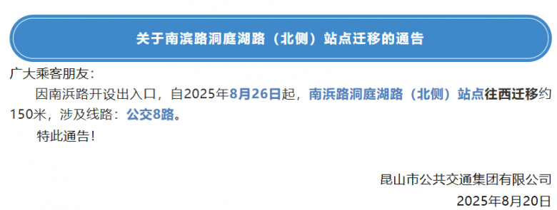 关于南滨路洞庭湖路(北侧)站点迁移的通告