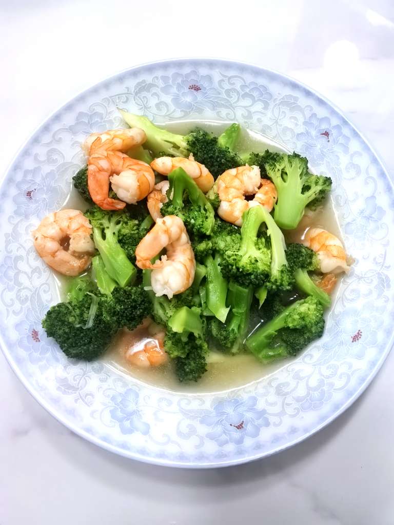 烧水,滴油1,2,3,4,5滴,盐半勺,水开放西兰花焯水2分钟,冷水过滤,放油,西兰花,虾仁翻炒,放水,盐,鸡精,闷一分半钟,起锅装盘
