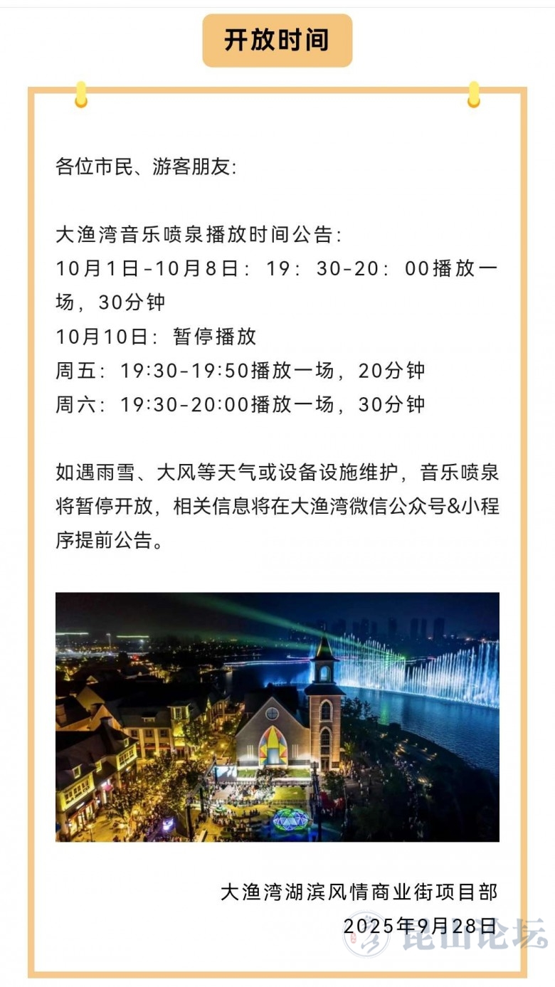 [百姓话题]昆山大渔湾10月音乐喷泉播放时间公告,国庆假期每天都有 [复制链接]