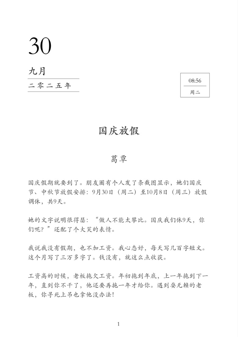 作者先从自身工作与生活状态切入,工资不高但按时发放,工作不忙且心态平和,没有被金钱和杂事烦扰,还能在闲暇时记录生活。这种在平凡生活里寻得内心宁静的状态,展现出一种难能可贵的知足。