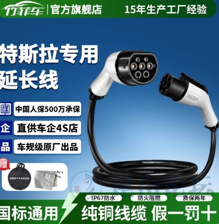 适用于特斯拉modelY/3/S/X充电桩延长线带端枪头 比亚迪也适用