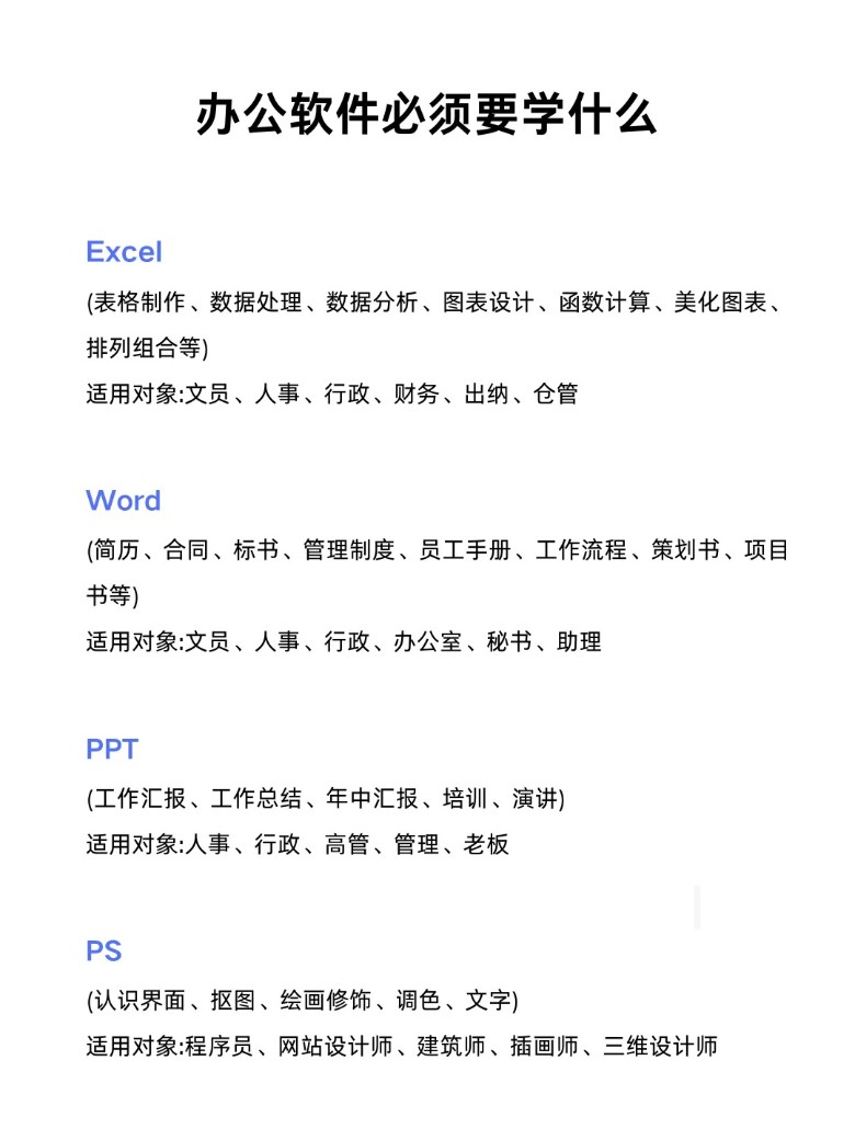 通过高级文秘课程,让学员掌握电脑基础知识和日常电脑软件维护知识,并熟练使用办公自动化的Word、Excel 、PowerPoint三大办公软件,使学员能够轻松工作、提高效率、节省时间、增强个人的办公执行力,成为合格的高级办公人员。💁🏻♀️学习对象:1️⃣零基础学习,对电脑感兴趣;2️⃣有意从事文员、文秘、会计等工作的社会青年;3️⃣欲从事文案工作及高级文案和管理工作者。4️⃣自由工作者5️⃣互联网工作者6️⃣纯兴趣爱好者 会电脑现在已经成了求职的必备技能,懂电脑办公知识,在找工作时候会多一份出路。.无论是文员文秘办公,前台登记,出纳做表格,大学生选课,教师做课件,仓管电脑记录货物等,都需要灵活运用电脑。.❓零基础学电脑办公难不难不难,会识字就可以。.❓学电脑办公能学到什么知识一般电脑的基础操作,office软件(word、excel、ppt),进阶版还能学ps作图等。 👩🏻🏫零基础小班授课,一人一机,老师手把手教学,实操练习,从小白到高手、案例实战教学、提高办公效率、提高职场竞争力。