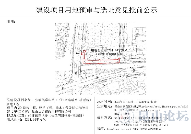 张浦镇彩华路(长江南路辅路-桃源路)新建工程用地预审与选址意见批前公示