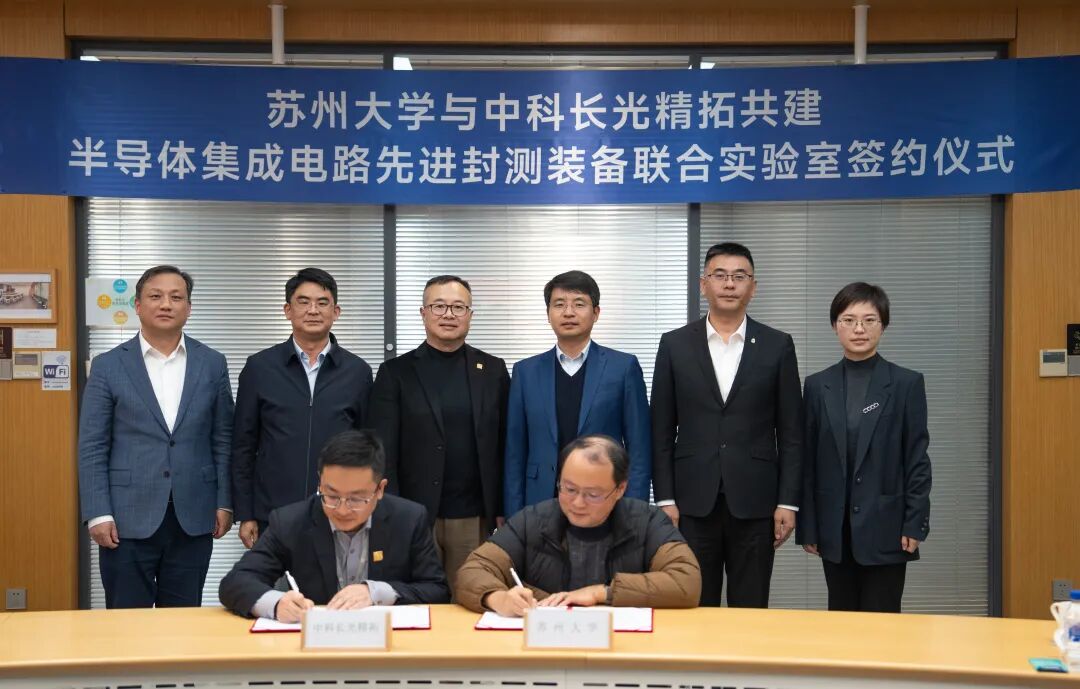 联合实验室由中科长光精拓与苏州大学数学科学学院、纳米科技协同创新中心等团队共建,聚焦半导体集成电路封测装备前沿技术研发、成果转化、人才培养及产业孵化。本次合作以6年为建设期,实验室将依托苏州大学基础研究优势与企业产业化能力,在芯片封装偏差补偿、利用纳米导电浆料印制RFID环保基材射频天线、先进制程和新材料等研究开发方向开展联合技术攻关,形成“研发-转化-孵化”一体化创新链,推动半导体封测技术在智能制造、物联网等场景的示范应用。