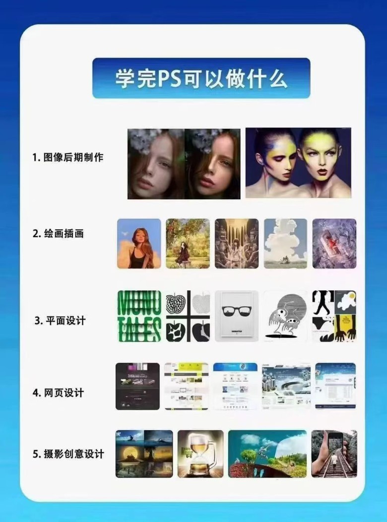 ● 练习素材包:报名就送配套练习素材,比如待修的人像照片、空白的海报模板、需要排版的文字内容,不用你自己找素材,跟着老师一步步操作,练完就能出成果;