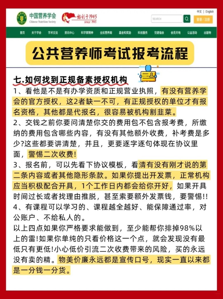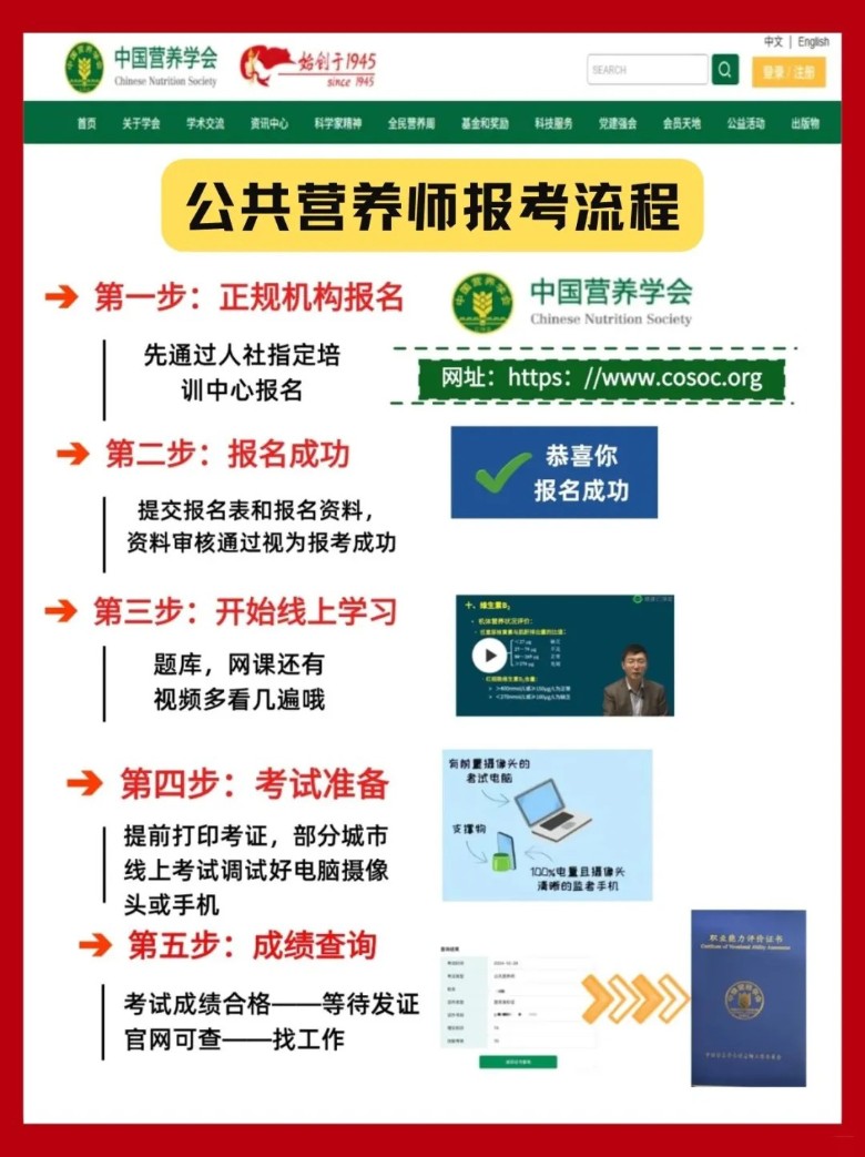 还在为公共营养师报考到处查资料?担心踩坑白花钱?这份 2025 年最新报考指南,从报名门槛到就业方向全拆解,新手看完直接上手,少走 90% 弯路,赶紧收藏转发!❗ 报考核心预警:个人无法报名,选对机构是关键划重点!公共营养师没有个人报名通道,必须通过官方授权的正规机构提交材料、完成培训后才能报考!很多人踩过这些坑:轻信 “代报名”“无需培训”,结果交了钱拿不到考试资格;选了无资质机构,考完连证书都查不到。记住:认准机构的官方授权资质、完善的培训体系和售后保障,才是拿证的第一步!🔥 2025 报考关键信息,一文理清不迷路1. 报考条件:门槛友好,零基础可冲年满 18 周岁即可报考,不限制专业、不要求学历!不管你是在职党想转行、宝妈想提升技能,还是学生党提前储备竞争力,都能轻松满足报名要求,零基础也能放心入局。2. 考试时间:一年 3-4 次,机会充足全年分批次开考,大概每 3-4 个月就有一次考试机会,错过一次不用等全年!2025 年首批考试筹备已启动,早报名早培训,能更快抢占考试名额~3. 报名节奏:随时可报,通道已开没有固定报名截止时间,全年滚动报名,目前 2025 年报考通道已正式开启!建议提前 1-2 个月报名,预留充足时间学习备考,避免临时抱佛脚。4. 考试科目:两门合格,拿证不难只考《理论知识》和《技能考核》两门,均达到 60 分即为合格:- 理论知识:涵盖营养学基础、食品安全、人群营养等核心考点,以选择题为主,记忆性内容居多,配合刷题容易提分;