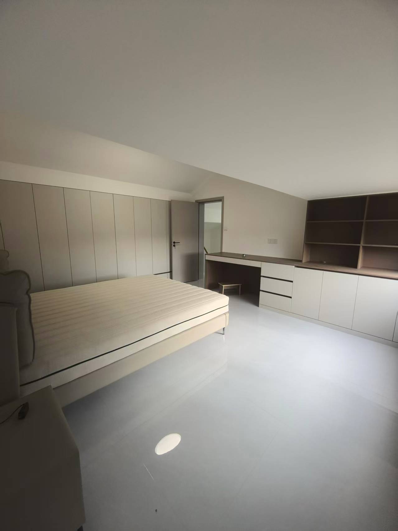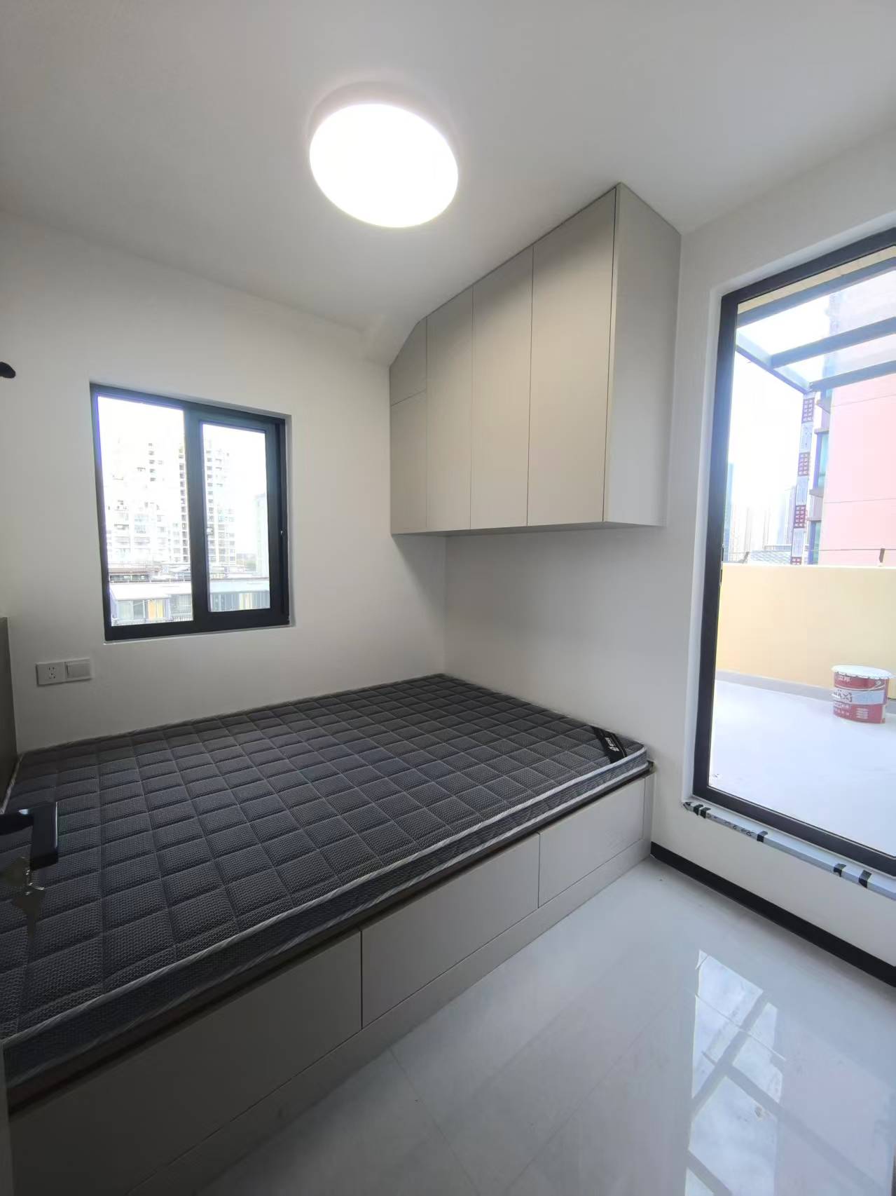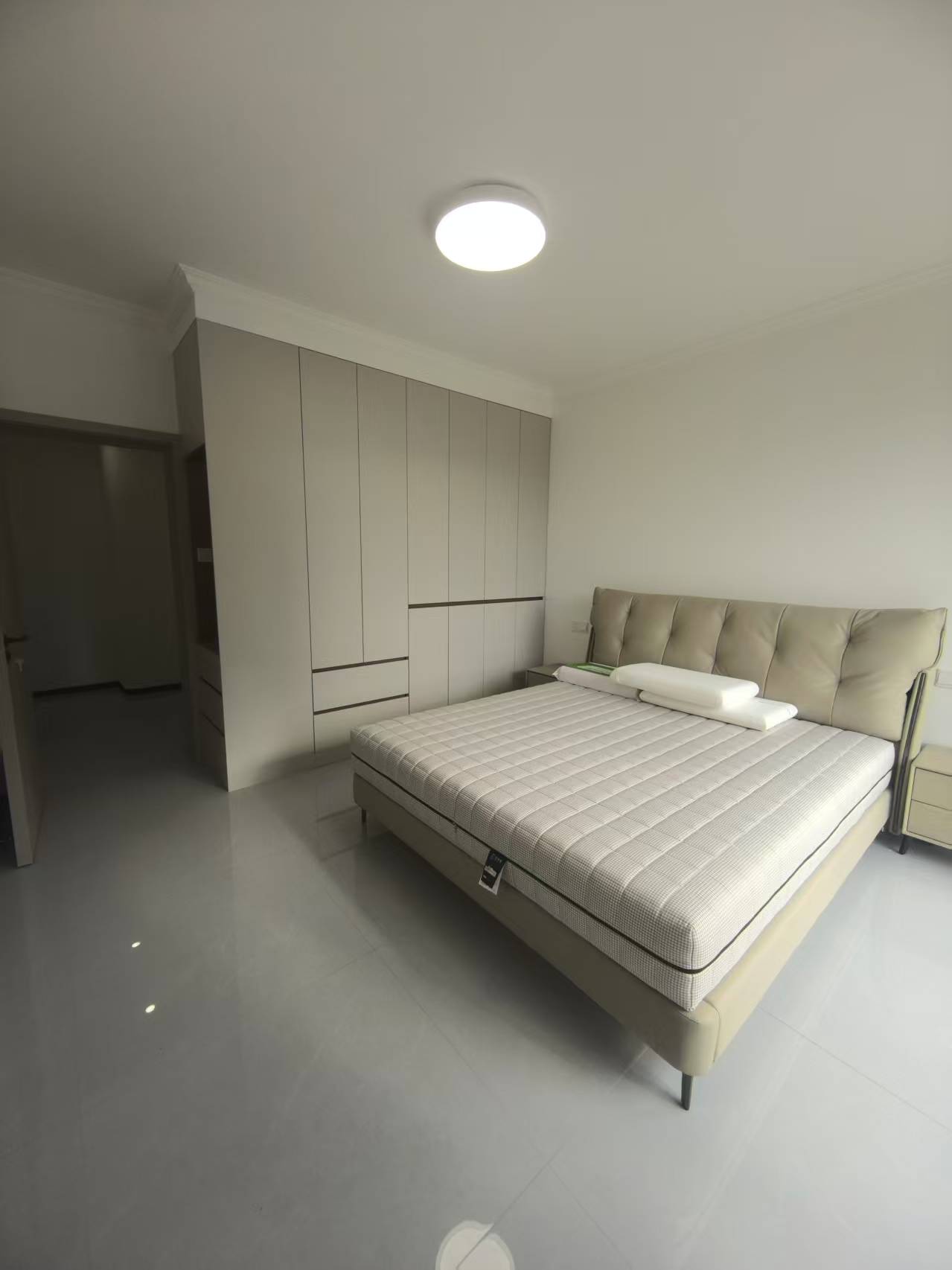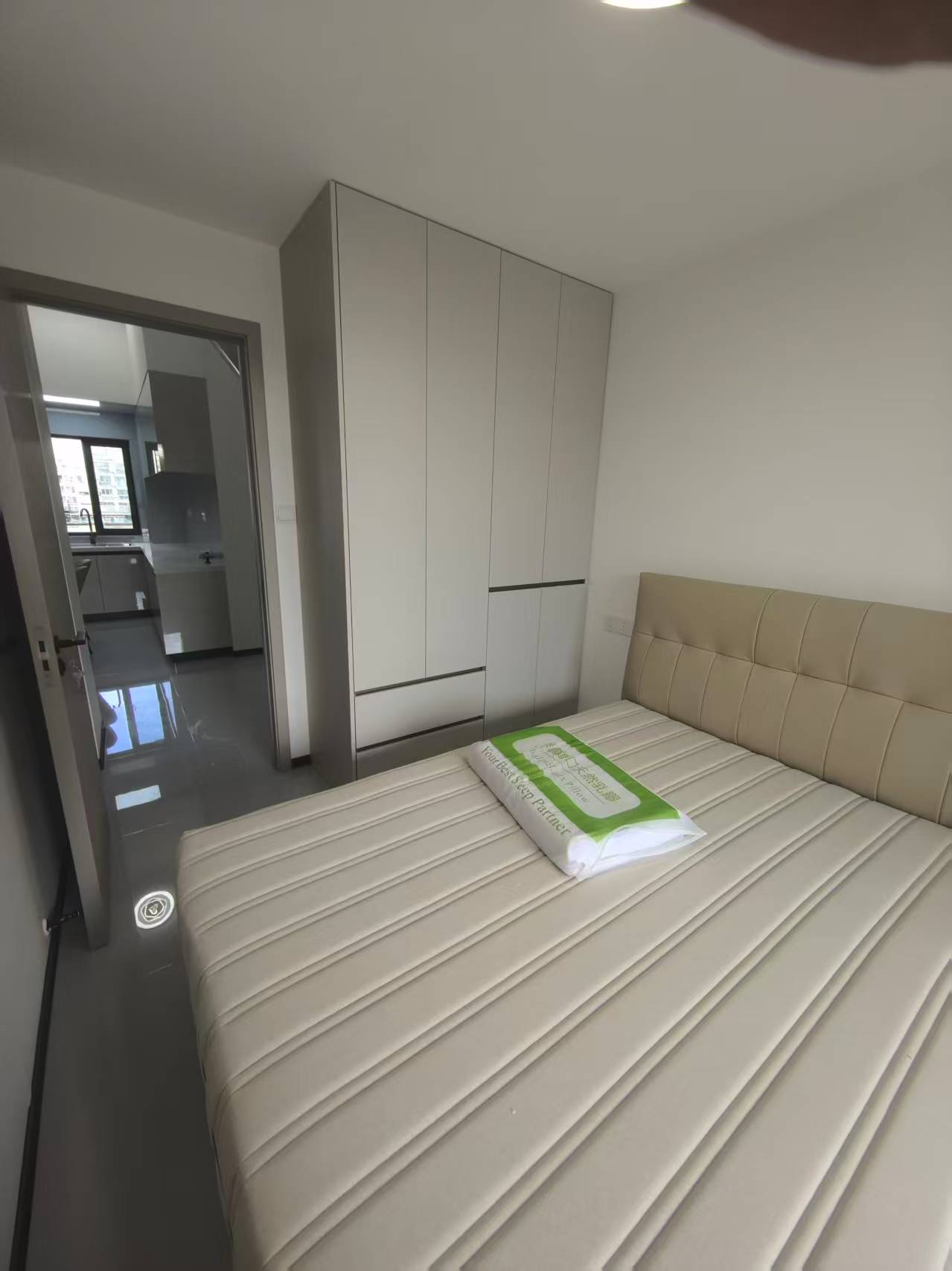 次卧和主卧用了同款色系 + 通顶柜,保持全屋风格统一,空间虽小但够用,日常休息、临时留宿都合适。