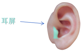 位置:耳孔前方的瓣状隆起(如“小耳朵”),咽喉在耳屏内侧面上1/2处。
