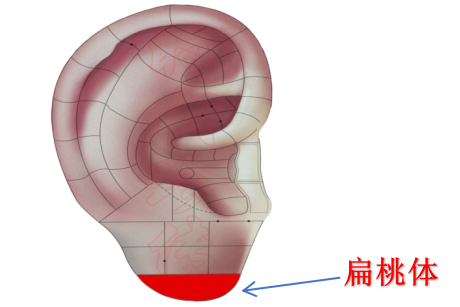 位置:耳朵最下方柔软的部分,扁桃体在耳垂正面下部。