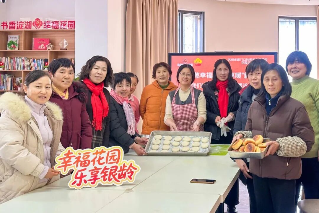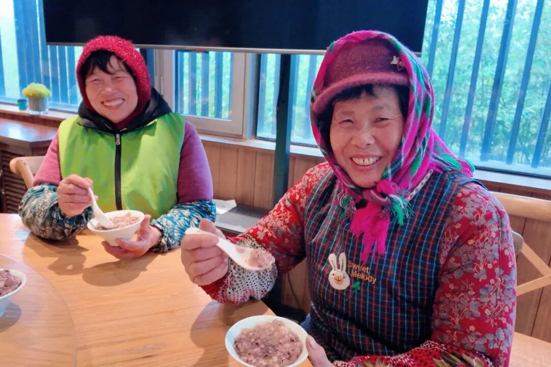▲淀山湖镇淀湖社区老年大学的学员们化身“爱心厨神”,亲手熬制香甜腊八粥、制作软糯酒酿饼