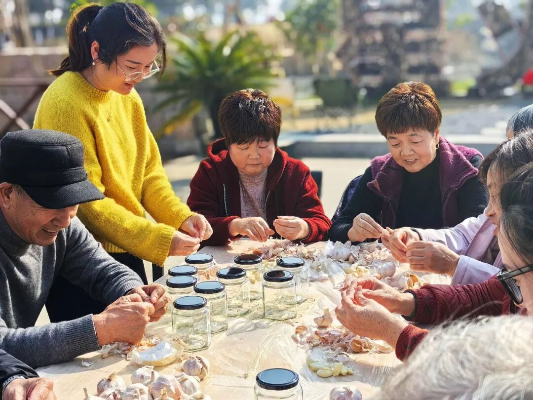 ▲昆山高新区群星村组织村民开展腊八蒜腌制、知识问答等民俗体验活动
