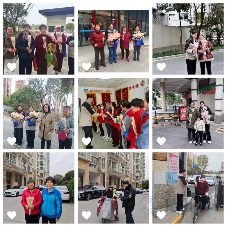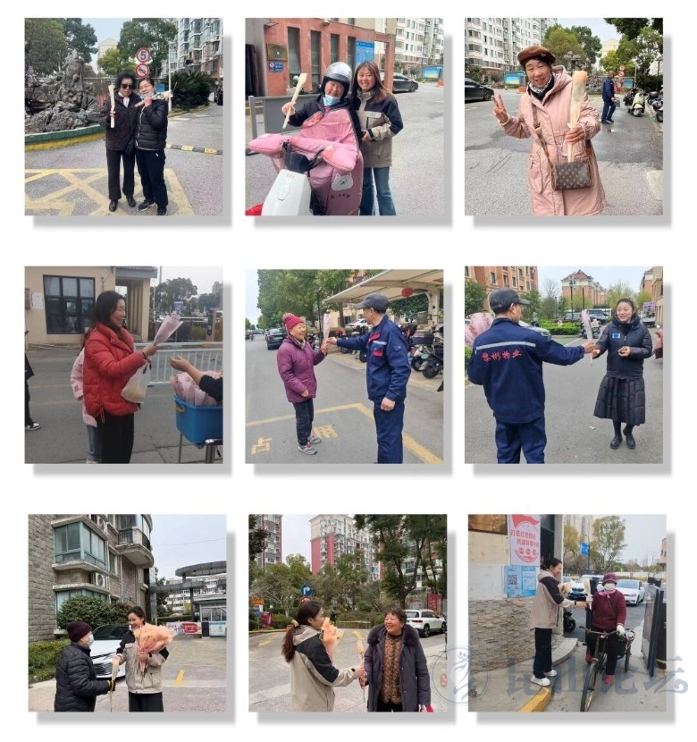 3 月 8 日上午8 点,我们的客服管家们早早来到小区,手捧一束束娇艳的鲜花,在园区里等候着每一位业主女神的到来。