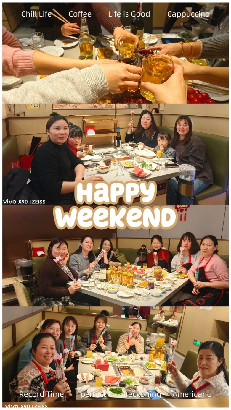 红汤翻滚,笑语盈盈。大家举杯畅饮,分享着工作中的点滴,畅聊着生活中的趣事。在这个温馨的夜晚,没有工作的压力,只有姐妹间的情谊和满满的幸福感。