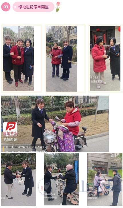 节日不仅有浪漫,更有温暖与责任。绿地世纪家园南区还特此开展 “致敬银发女神” 活动。组织管家走访社区独居老年女性,为她们送上鲜花与节日祝福,陪她们唠家常、话近况,让独居阿姨们感受到物业的温情。