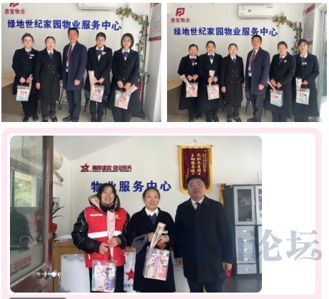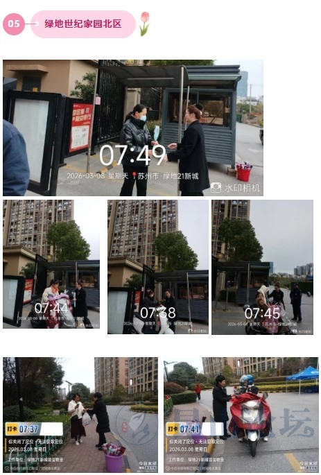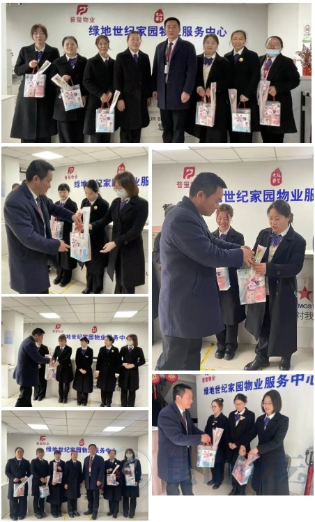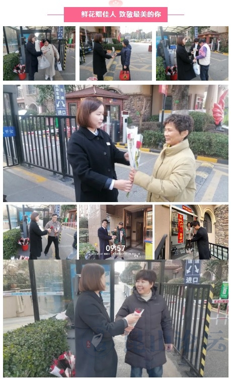 绿地世纪家园东、西、南、北区的管家向业主们送上精美花束。每一束花都是他们对女业主们辛勤付出和支持信任的真挚回馈。