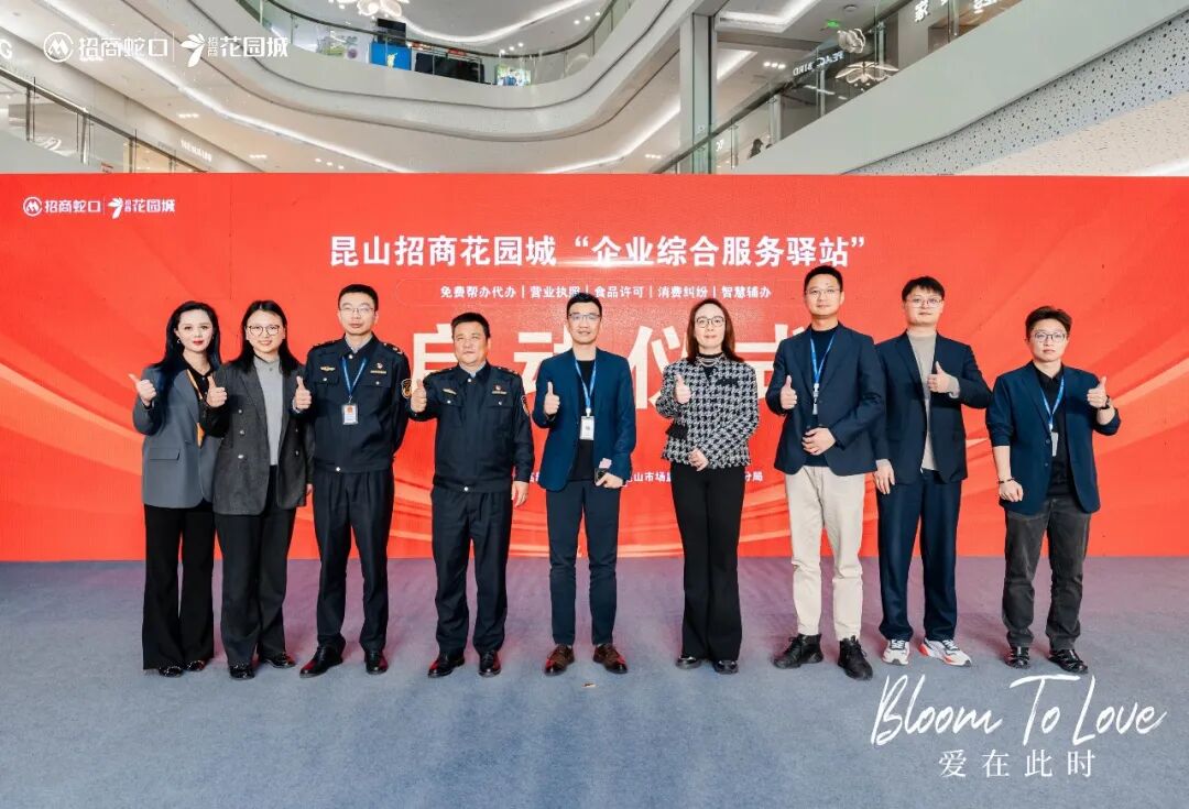 2026年3月12日,昆山首家进驻购物中心的政务服务站点——昆山招商花园城“企业综合服务驿站”正式启用。昆山市市场监督管理局城北分局、昆山高新区行政审批局相关负责人、招商商管中北事业部昆山花园城总经理及相关领导嘉宾共同为服务驿站揭牌,标志着昆山政务服务进一步向商圈延伸、营商环境优化再提速、便民利企服务再升级。