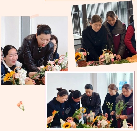 这个春日上午,她们暂时放下了对讲机、扫把与记录本,用一双巧手将春天装进花篮,也将美好植入了心田。每一朵盛开的鲜花,都是对她们辛勤付出的温柔肯定;每一份精心准备的礼物,都是对她们美好未来的真挚祝福。