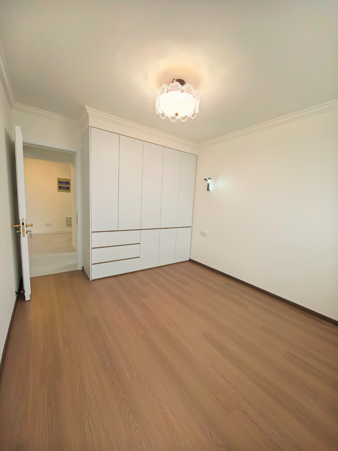 两间卧室都通铺了温润的木地板,脚感舒适细腻,踩上去软软的,和客厅的瓷砖形成冷暖对比,走进卧室就能瞬间卸下一天的疲惫,营造出温柔治愈的休憩氛围。