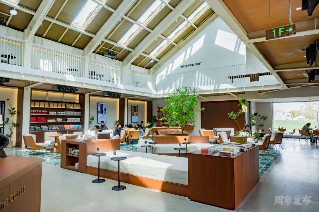 红砖墙、白色筒仓、时尚外摆、书店楼梯、咖啡店玻璃窗、玩偶墙