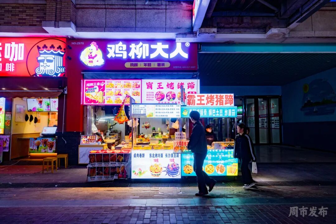 寻找反光表面——积水的地面、店铺玻璃窗,拍摄霓虹灯光的倒影与折射,画面会加倍迷离。将对焦点放在摊位食物或店主手上,让后方霓虹自然虚化成光斑,故事感瞬间拉满。