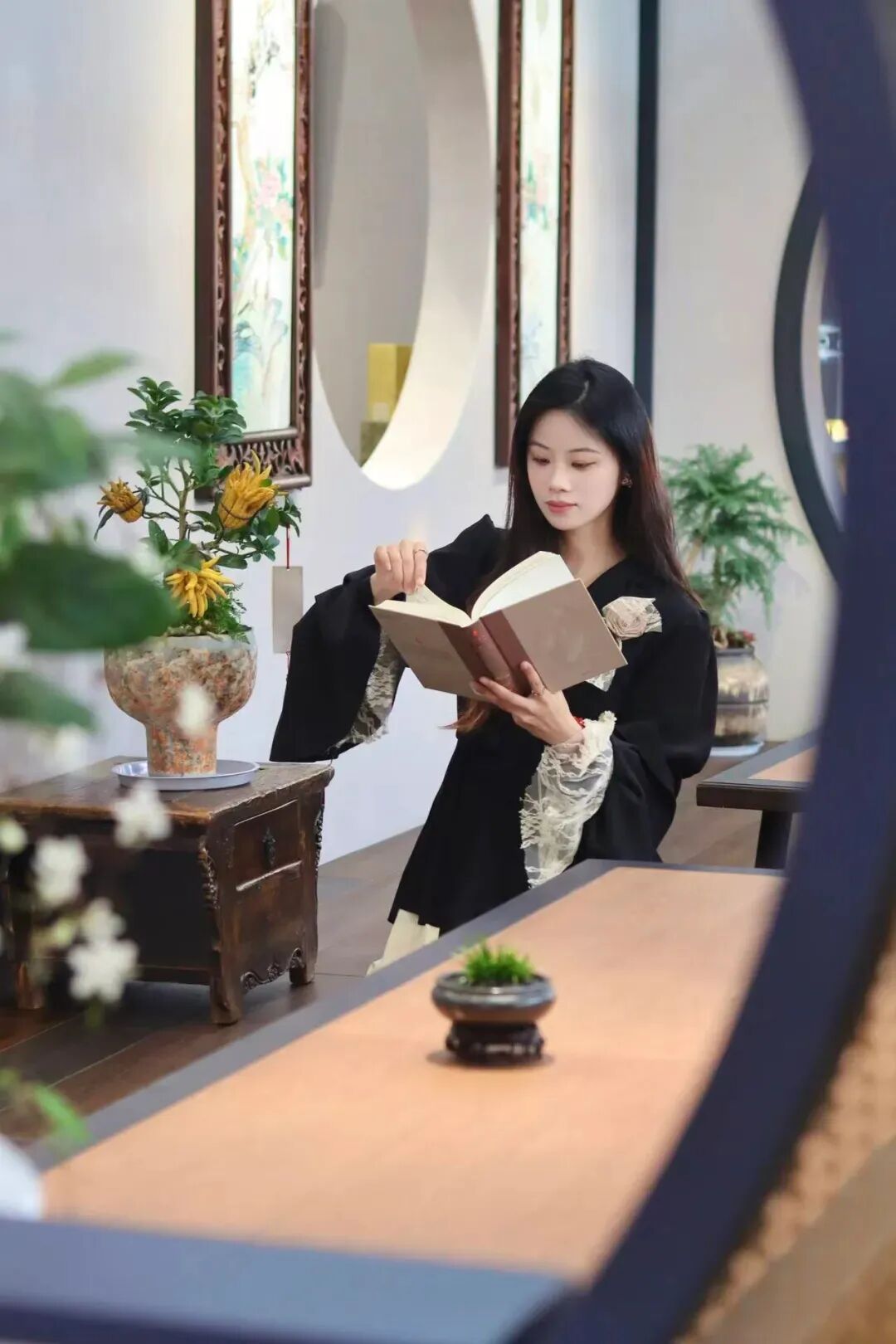 图书馆、书房内品读……